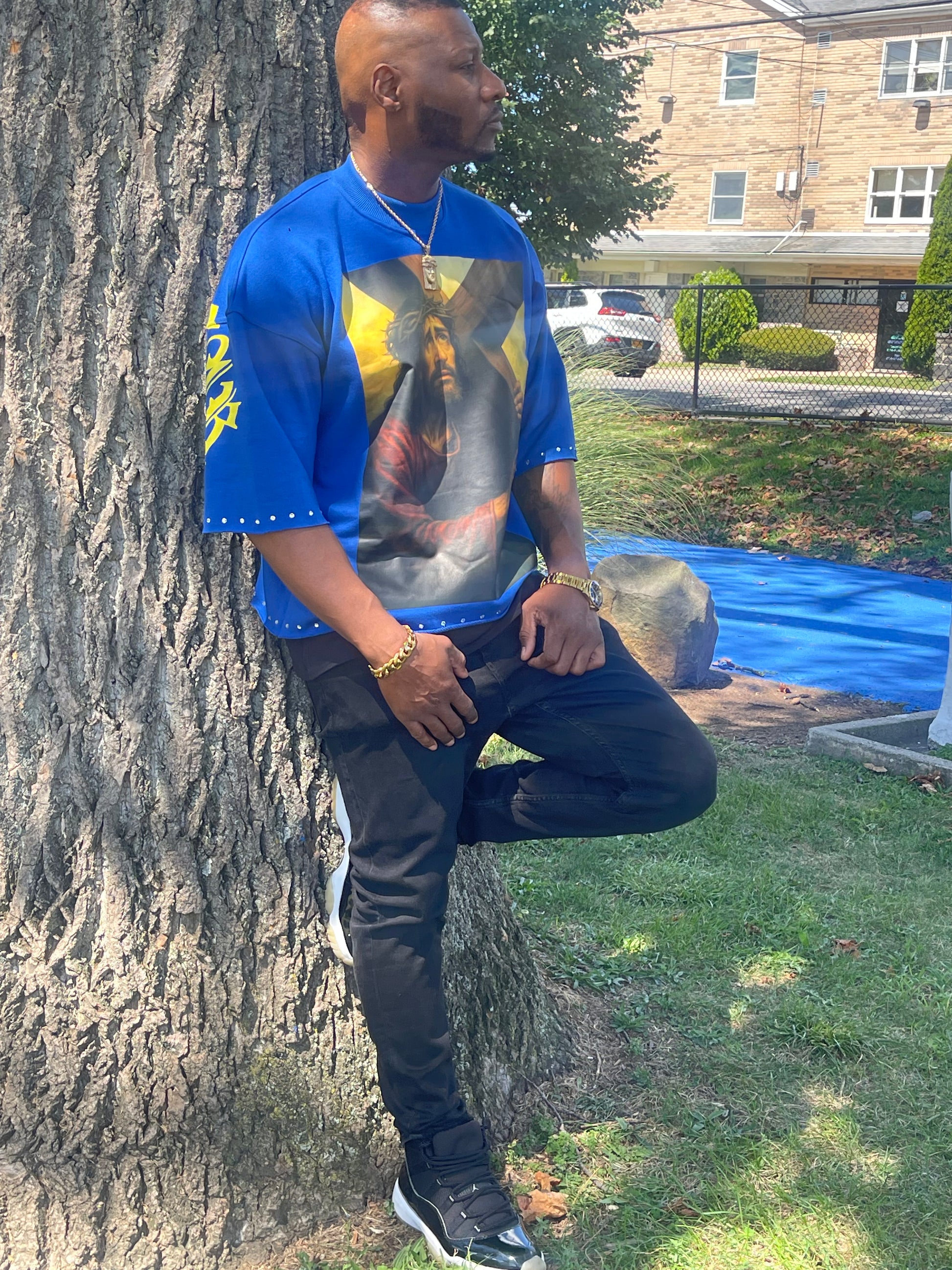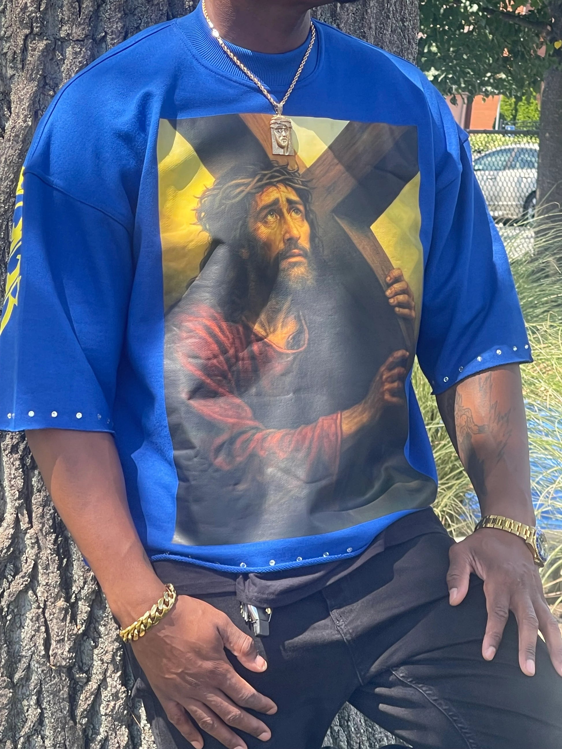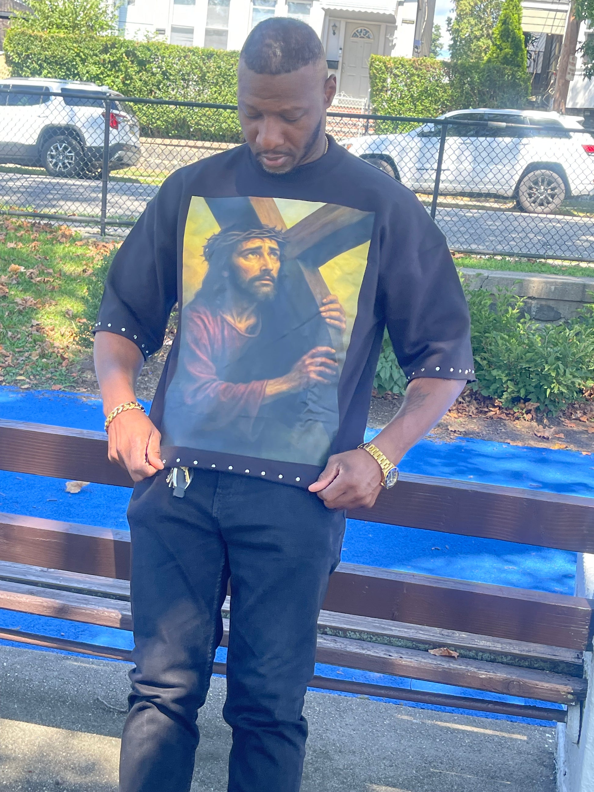- Studded Jesus Tee - Powerful statement piece with religious-inspired studded artwork